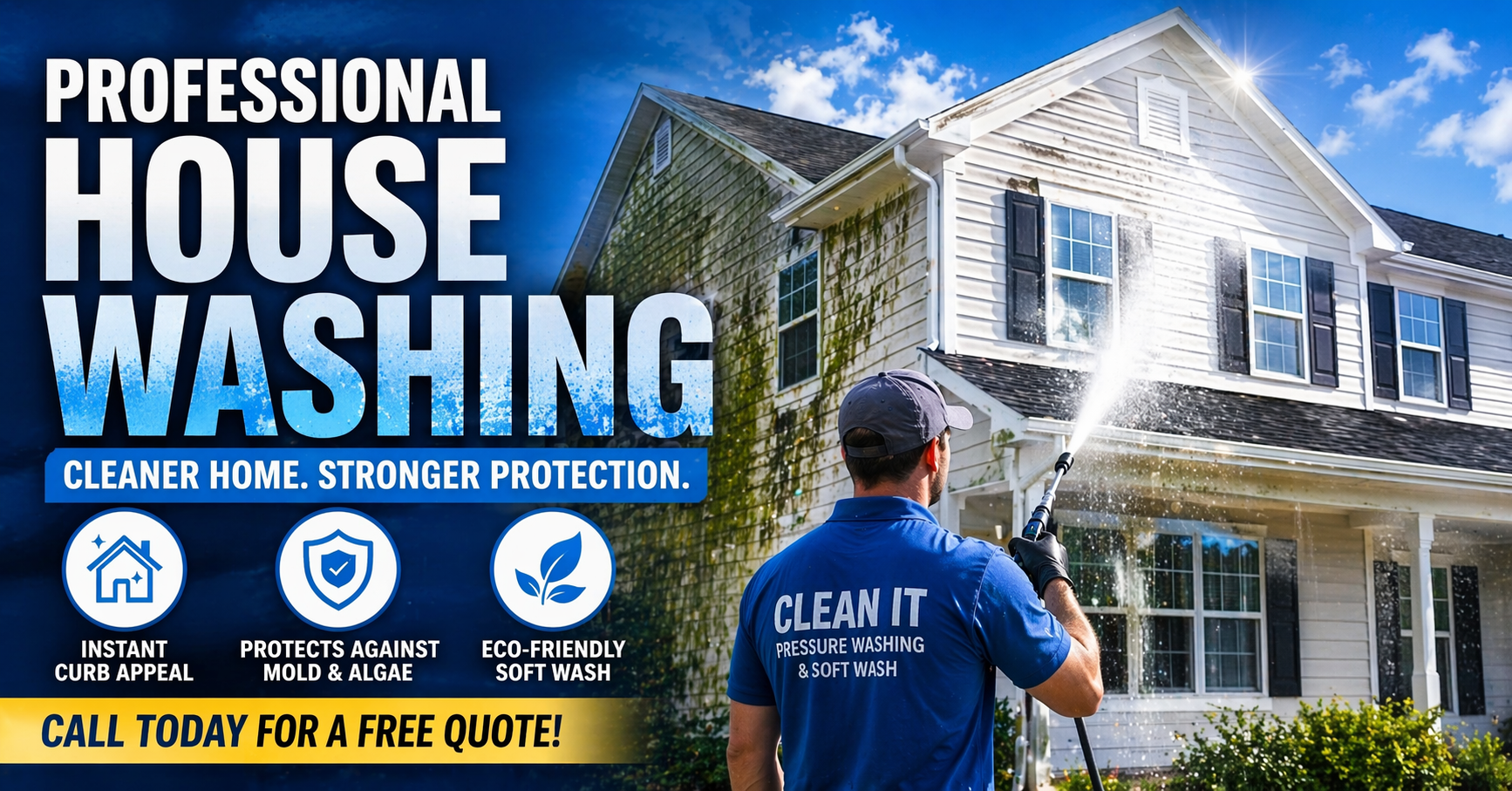 Restore, Protect, and Transform Your Home Your home is one of your biggest investments—and over time, dirt, grime, algae, and mildew can take a serious toll on its appearance and structure. If your siding is looking dull or you’re noticing green buildup, it’s time to consider professional house pressure washing services. At Clean It Pressure […]